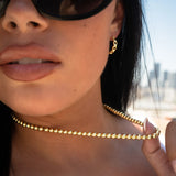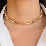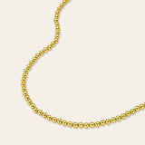 14k gold 5mm bead necklace available in your choice of gold color. Wear it by itself or layered, day or night.