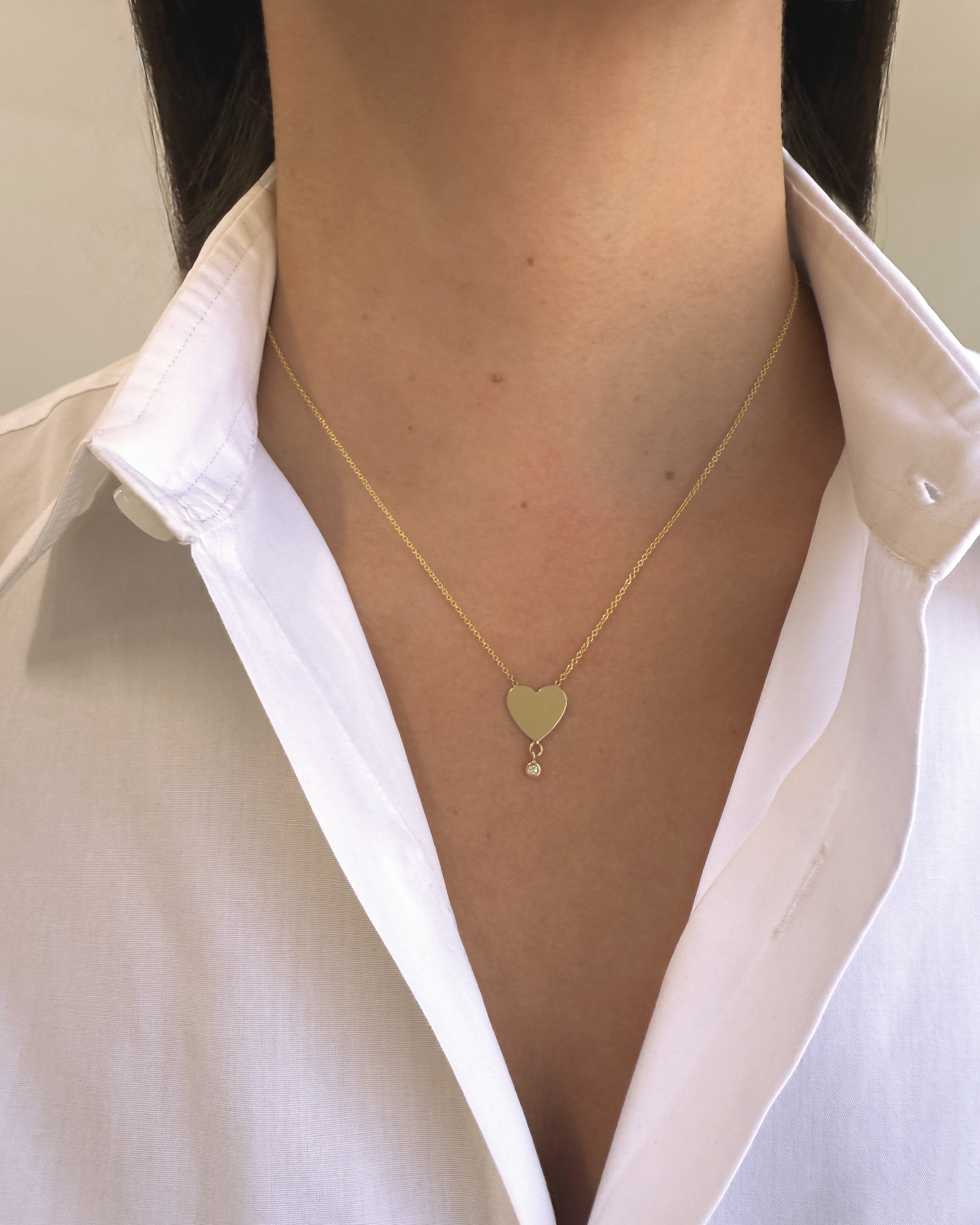 Classic and uber chic 14k gold heart with a mini birthstone bezel drop on a dainty cable link chain necklace. Customize it with your birthstone and an engraving for an effortlessly chic, timeless necklace that also makes the perfect gift!