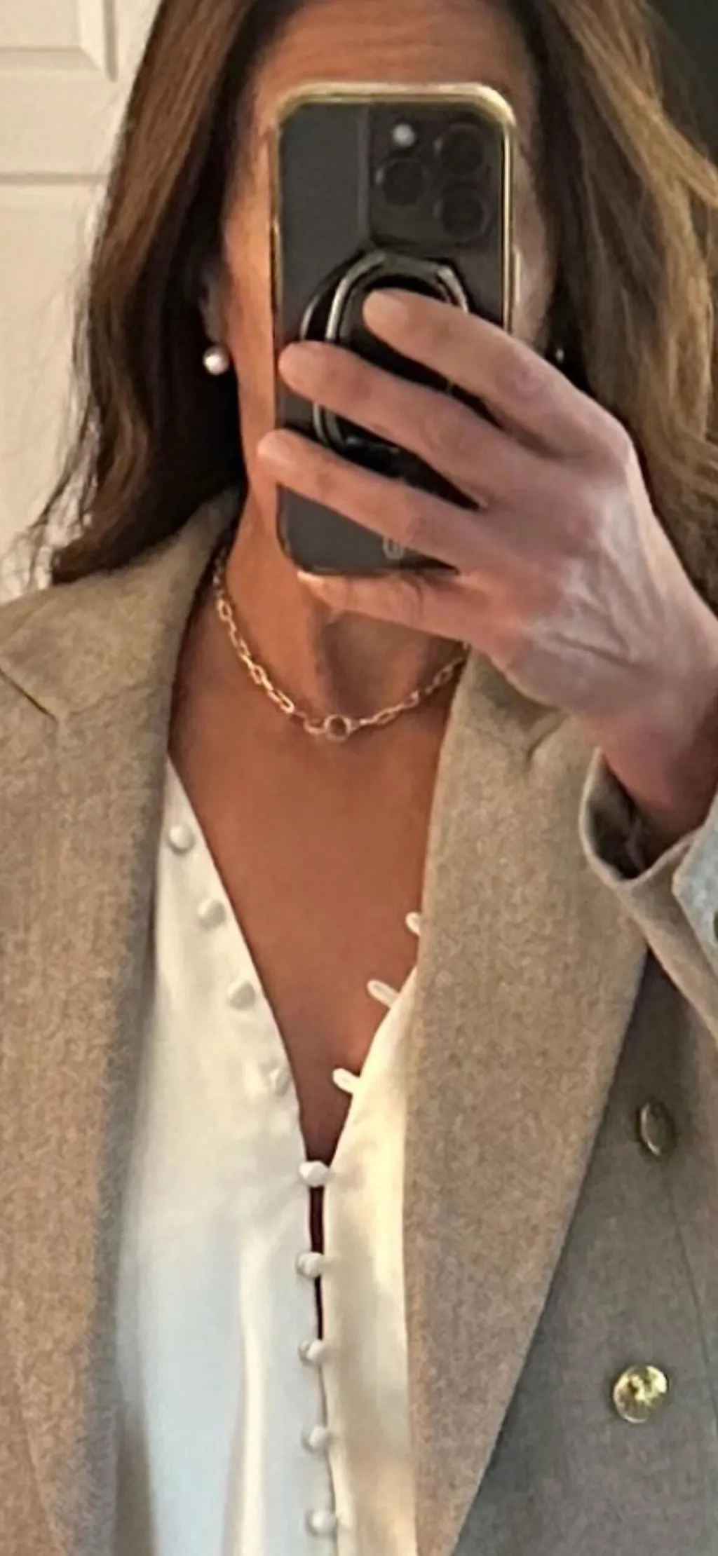 I treated myself to this beautiful necklace for my 55th birthday. I have since gotten hundreds of compliments on this. At first, I was nervous about it being too complicated to put on and also afraid it would easily slip off my neck. It is very secure. I wear it every single day in the shower and at the gym. It’s easy to clean and has become one of my favorite pieces