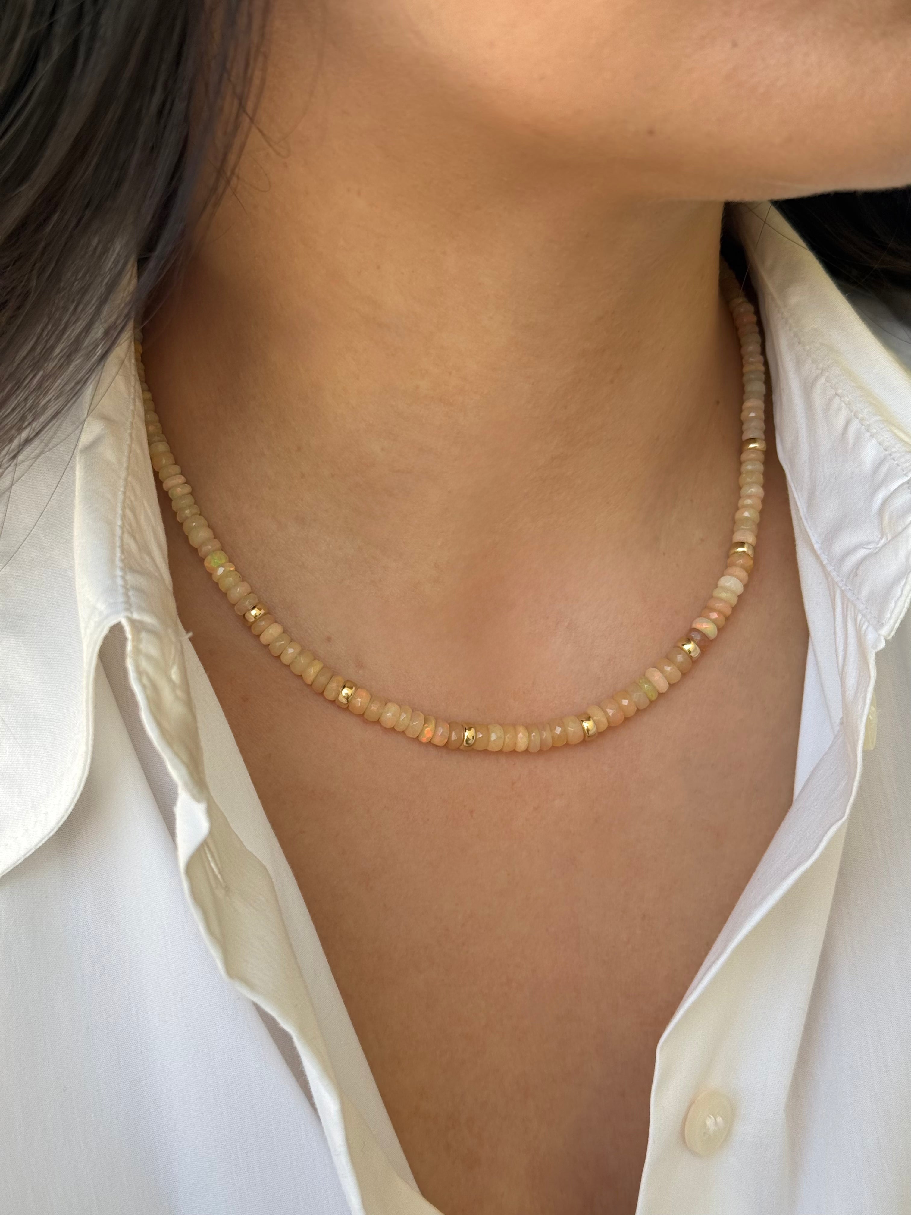 Indulge in the exquisite beauty of our 14K Gold Opal Segment Bead Necklace, a luxurious statement piece that showcases the elegance and allure of opals.