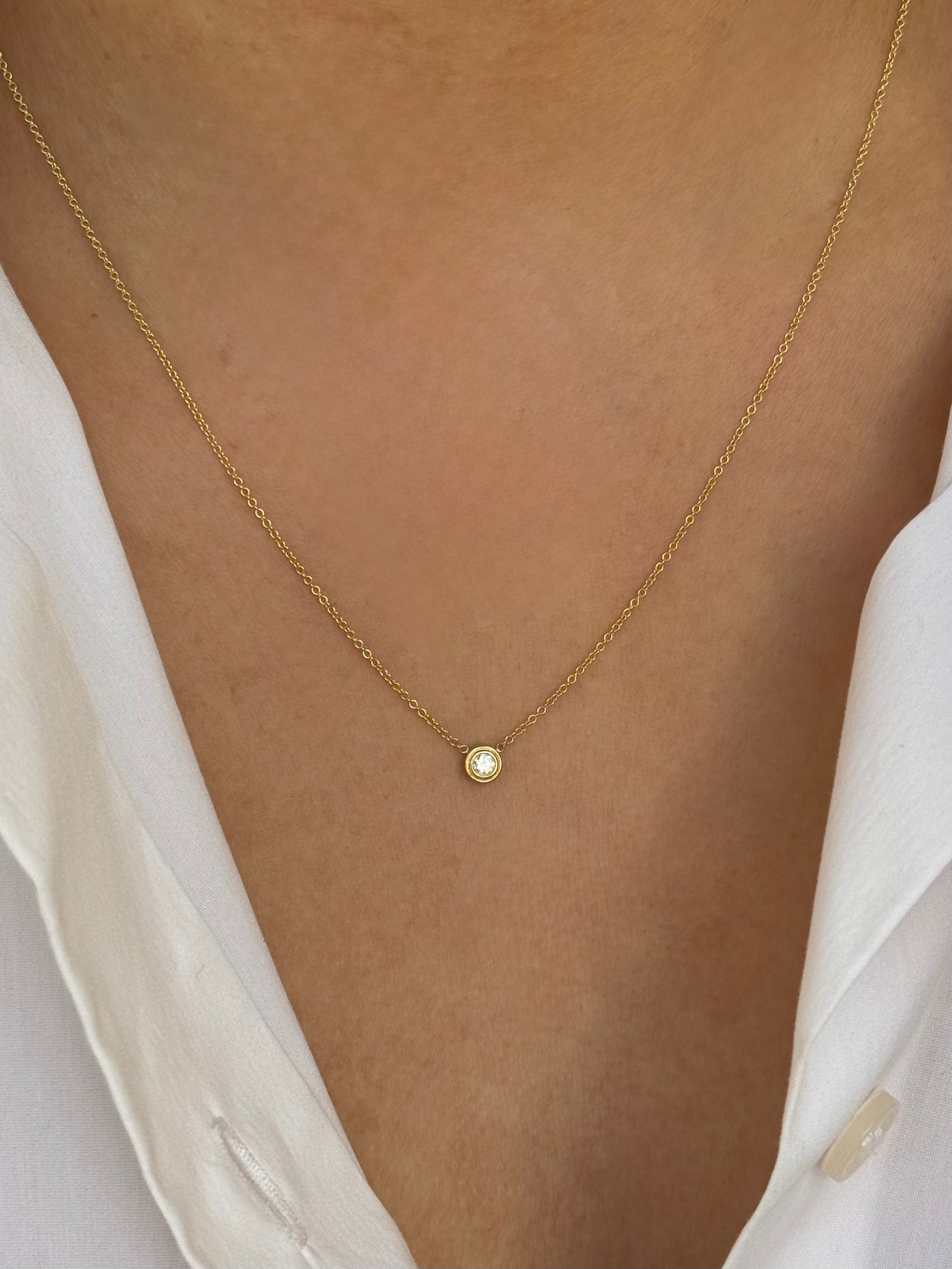 14k Gold Triple Diamond Bezel Necklace - 16"-18"