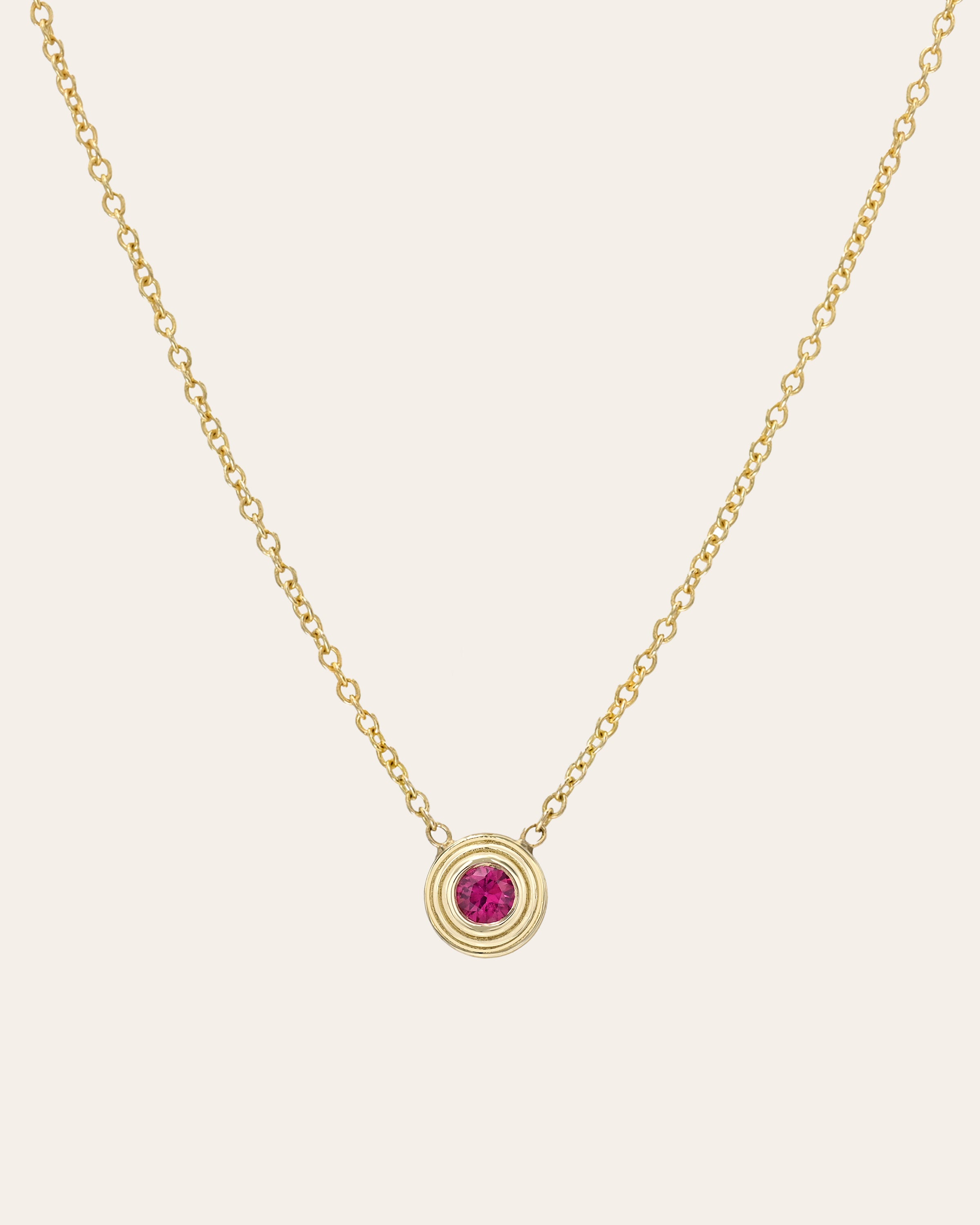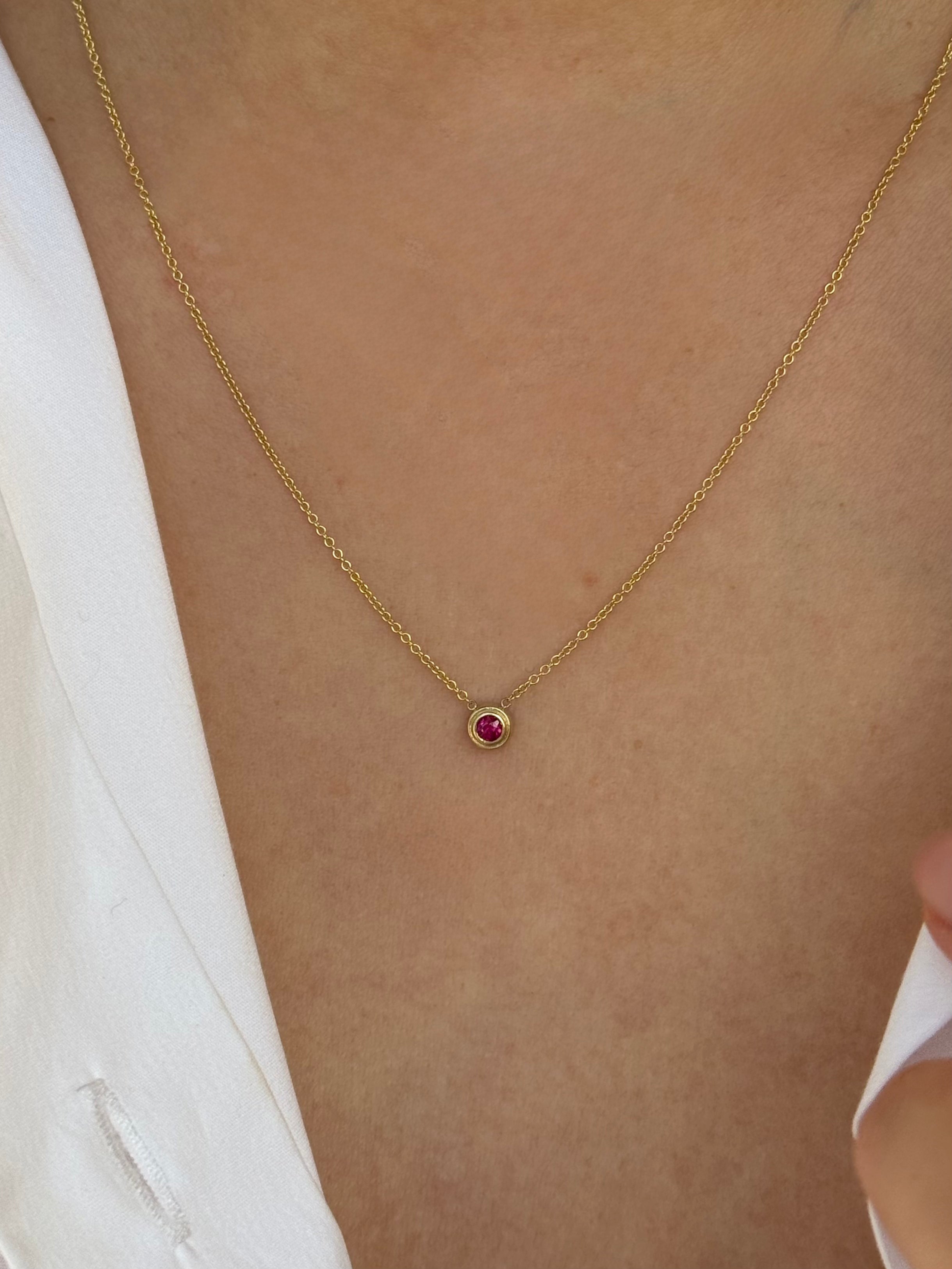 14k Gold Triple Ruby Bezel Necklace - 16"-18"