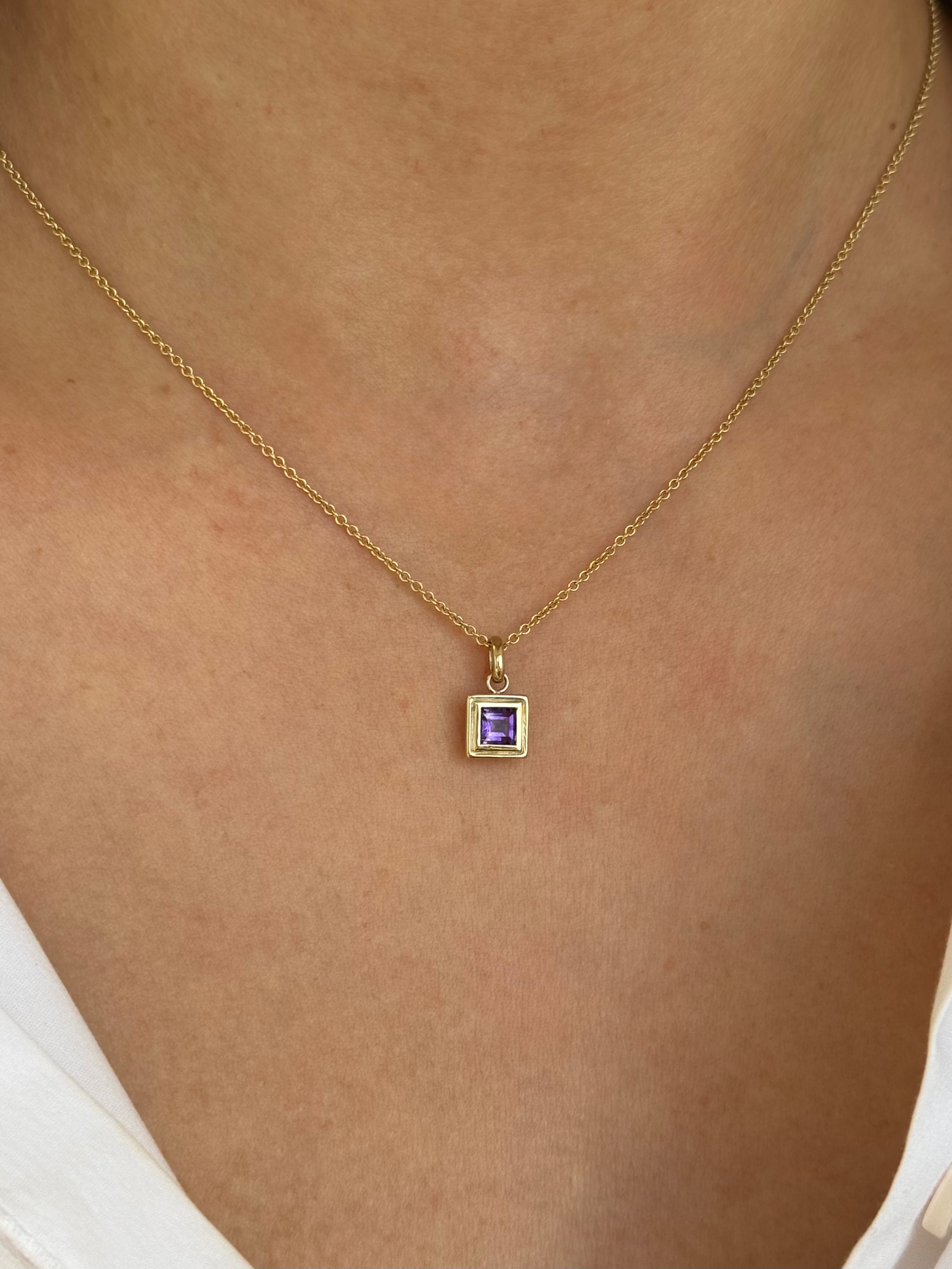 A bold square-cut amethyst set in a sleek bezel setting, making a effortless statement piece.