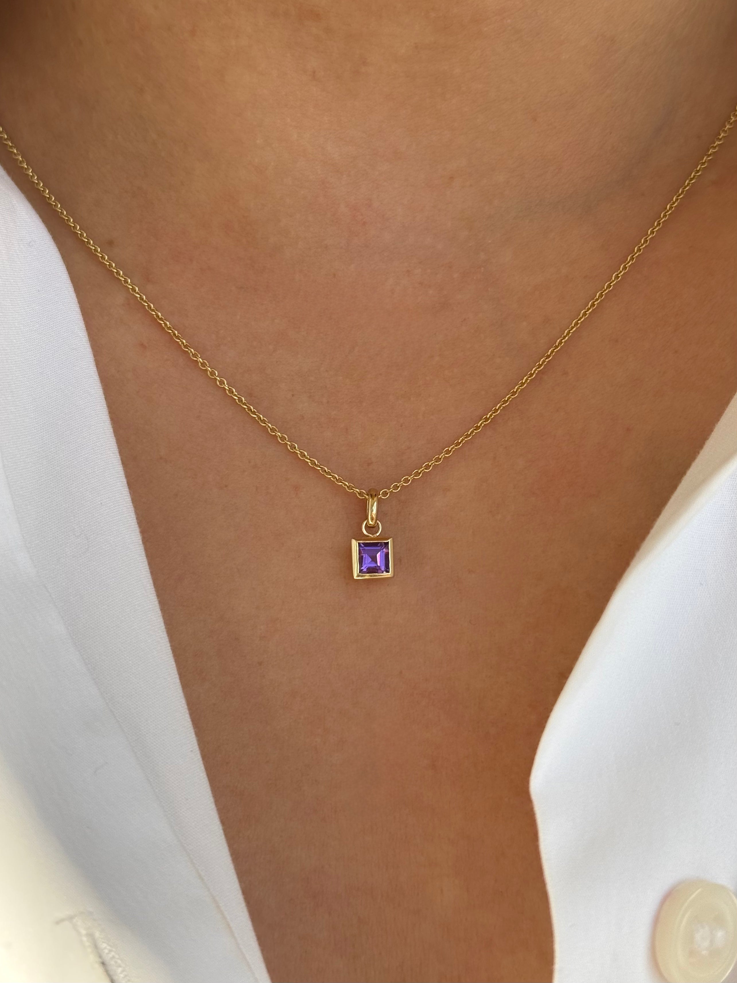 A petite square-cut amethyst set in a sleek bezel setting, perfect for everyday elegance.